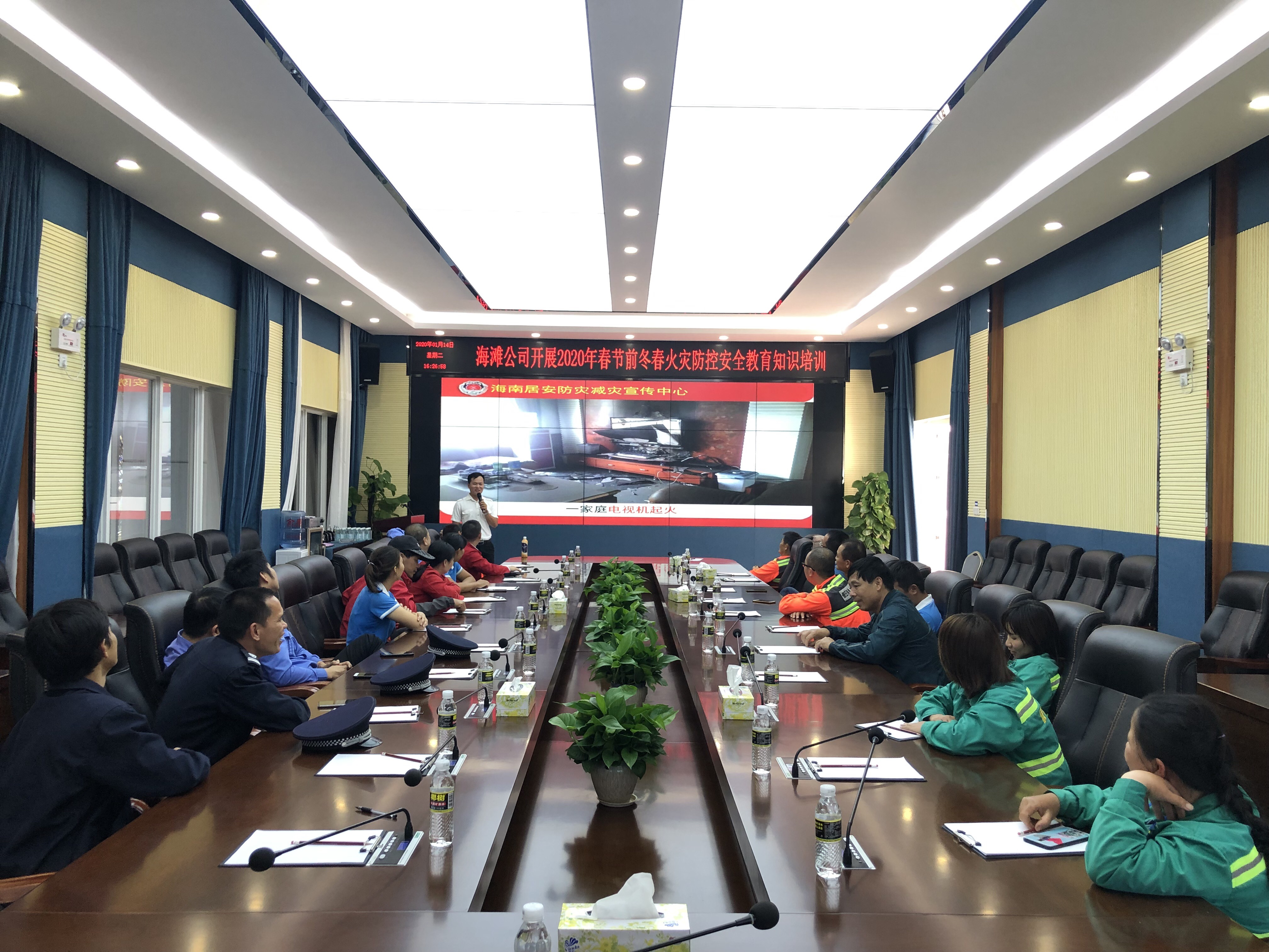为深入贯彻落实《海南省安全生产委员会办公室关于印发刘平治副省长在全省安全生产、森林防灭火暨冬春火灾防控工作电视电话会议上讲话的通知》(琼安委办〔2019〕155 号)、《海口市安全生产委员会办公室关于开展春节前安全生产教育培训的通知》(海安委办〔2020〕2 号)要求。确保新的一年开好局、 起好步,切实提升广大职工消防安全意识和自防自救能力,全面筑牢假日海滩旅游区安全“防火墙”,为自贸区(港)建设打造优质的“安全生态”。2020年1月14日下午,海滩公司组织开展冬春火灾防控消防安全知识培训,共计31人参加。